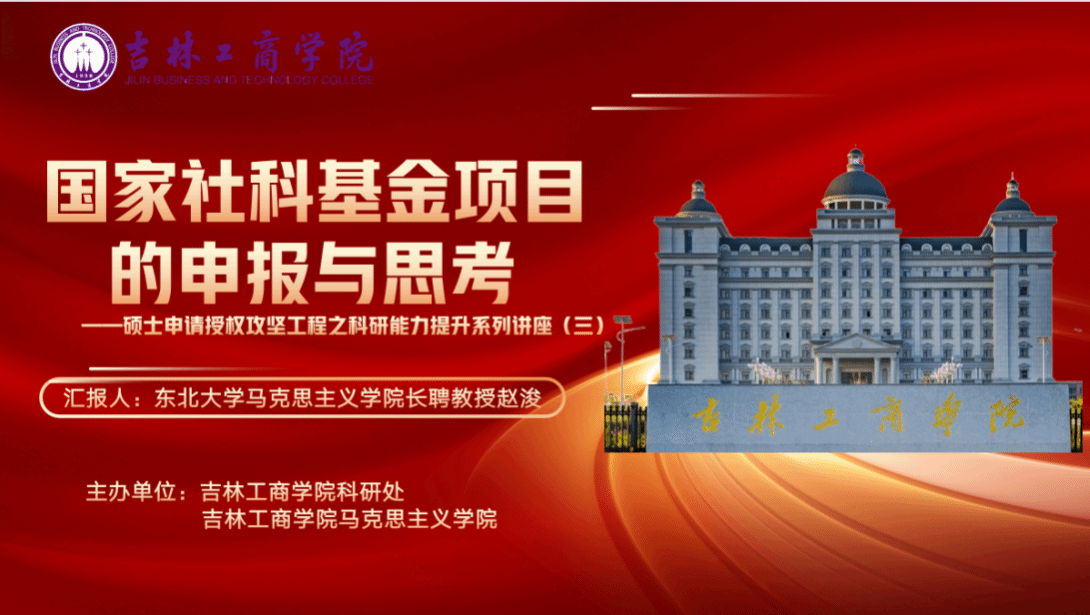 1月23日,学校举办硕士申请授权攻坚工程之科研能力提升系列讲座(第三期),讲座特邀东北大学马克思主义学院长聘教授、吉林工商学院特聘教授赵浚博士主讲。本次讲座由科研处、马克思主义学院共同主办,采用线上方式进行。