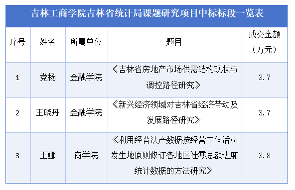 自吉林省第五次全国经济普查研究课题发布招标意向以来,科研处认真组织教师积极筹划项目申报,邀请专家论证指导,确保投标文书高效优质。本次中标的3个研究项目紧密结合吉林省高质量发展的核心任务,协同聚焦新动能培育与民生经济稳定两大关键领域,一方面围绕新兴经济领域发展与统计方法创新展开探索,既深入研究新兴经济领域对吉林省经济的带动作用及发展路径,助力培育新兴经济增长点,又创新探索利用经普法人单位数据、按经营主体活动发生地原则修订各地区社会消费品零售总额进度统计数据的方法,为统计工作优化提供前瞻性支撑;另一方面聚焦重要民生与区域经济关键领域开展系统研判,既针对吉林省房地产市场这一重要民生领域,深入分析其供需结构现状并研究调控路径,又结合区域经济发展需求,为民生领域与经济领域的协同发展提供切实可行的调控策略与实践指引。3项成果研究内容兼具前瞻性与实践性,将共同服务于地方经济发展的现实需要,为吉林省构建现代化产业体系、维护市场平稳运行提供关键理论支撑与科学实施路径。