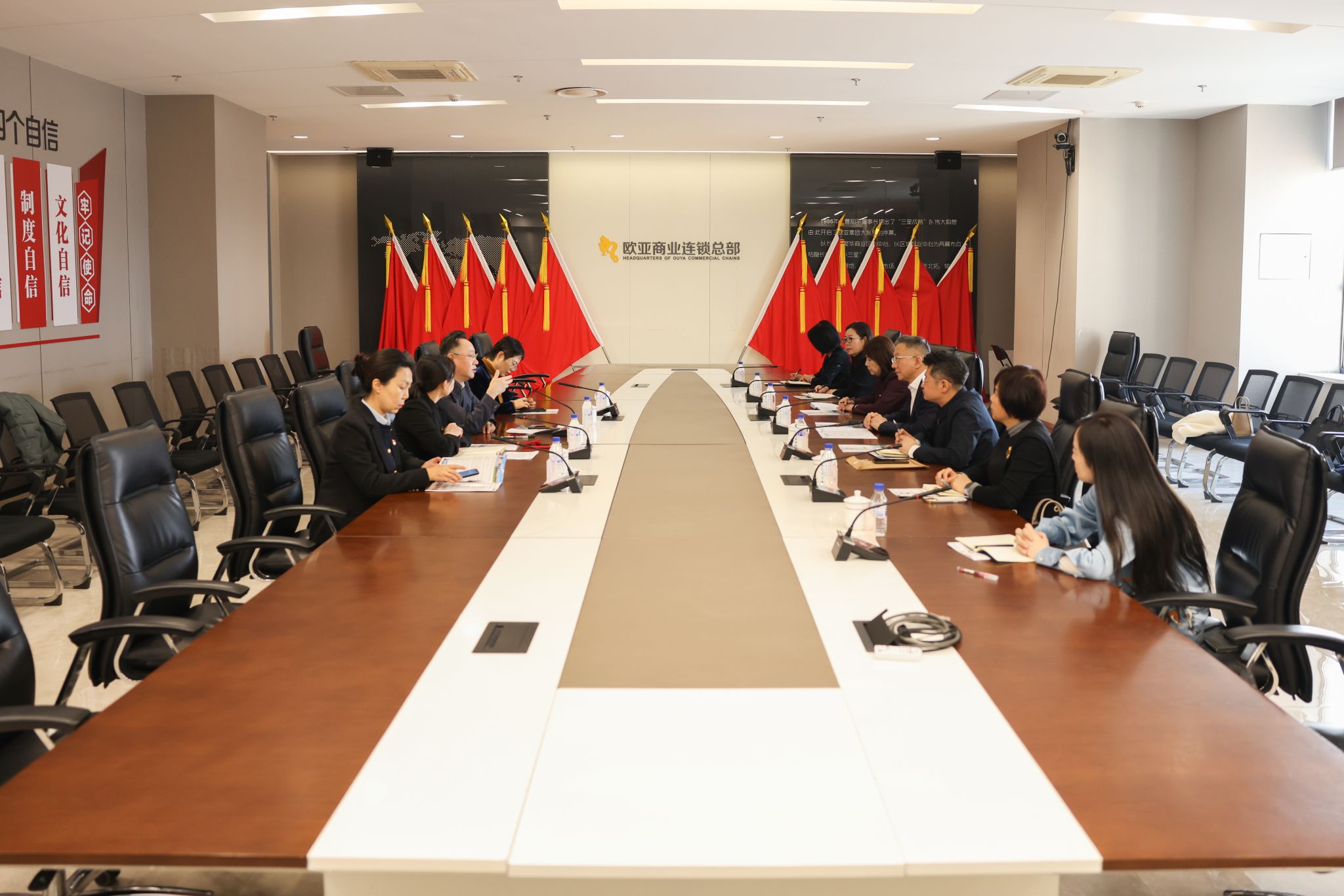 徐文介绍了学校的历史沿革、办学定位、学科专业特色和应用型人才培养成果。他指出,欧亚车百大楼有限公司作为欧亚集团的重要成员,在商业运营、人才培养等方面积累了丰富经验,与学校财政金融、会计审计、市场营销、国际贸易等专业的人才培养方向高度契合。他希望双方以此次访企调研为契机,进一步深化人才供需精准对接,推动就业定向输送,拓展产教融合协同育人,延伸合作领域,共同培养适应新零售业态发展的高素质应用型人才。