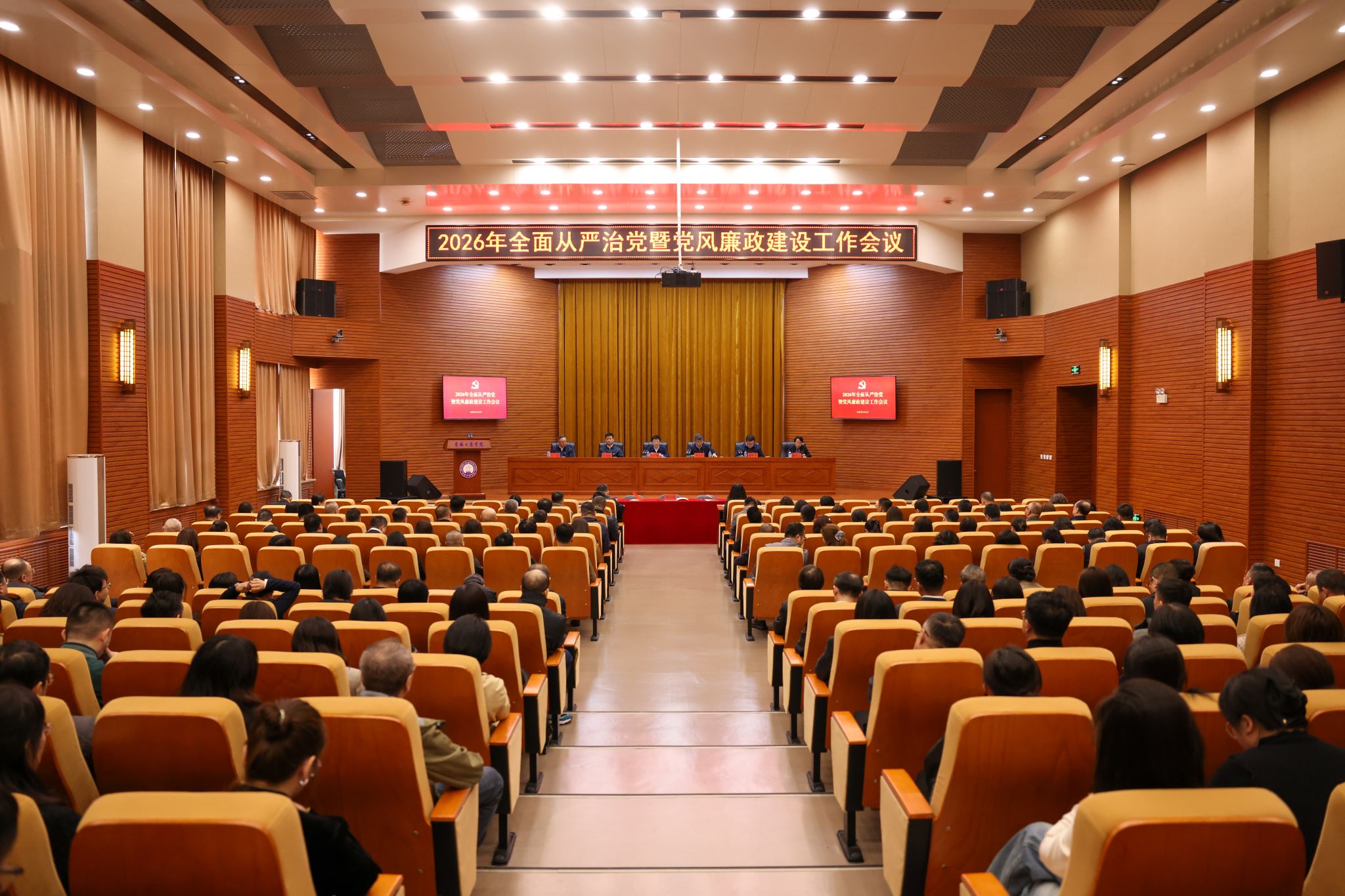 4月16日,学校召开2026年全面从严治党暨党风廉政建设工作会议,党委书记张吉锋出席会议并讲话,党委副书记、校长李宝永主持会议,学校领导班子成员、党委常委、党委委员、纪委委员、全体处科级领导干部、各教学单位教研室主任和实训中心主任参加会议。